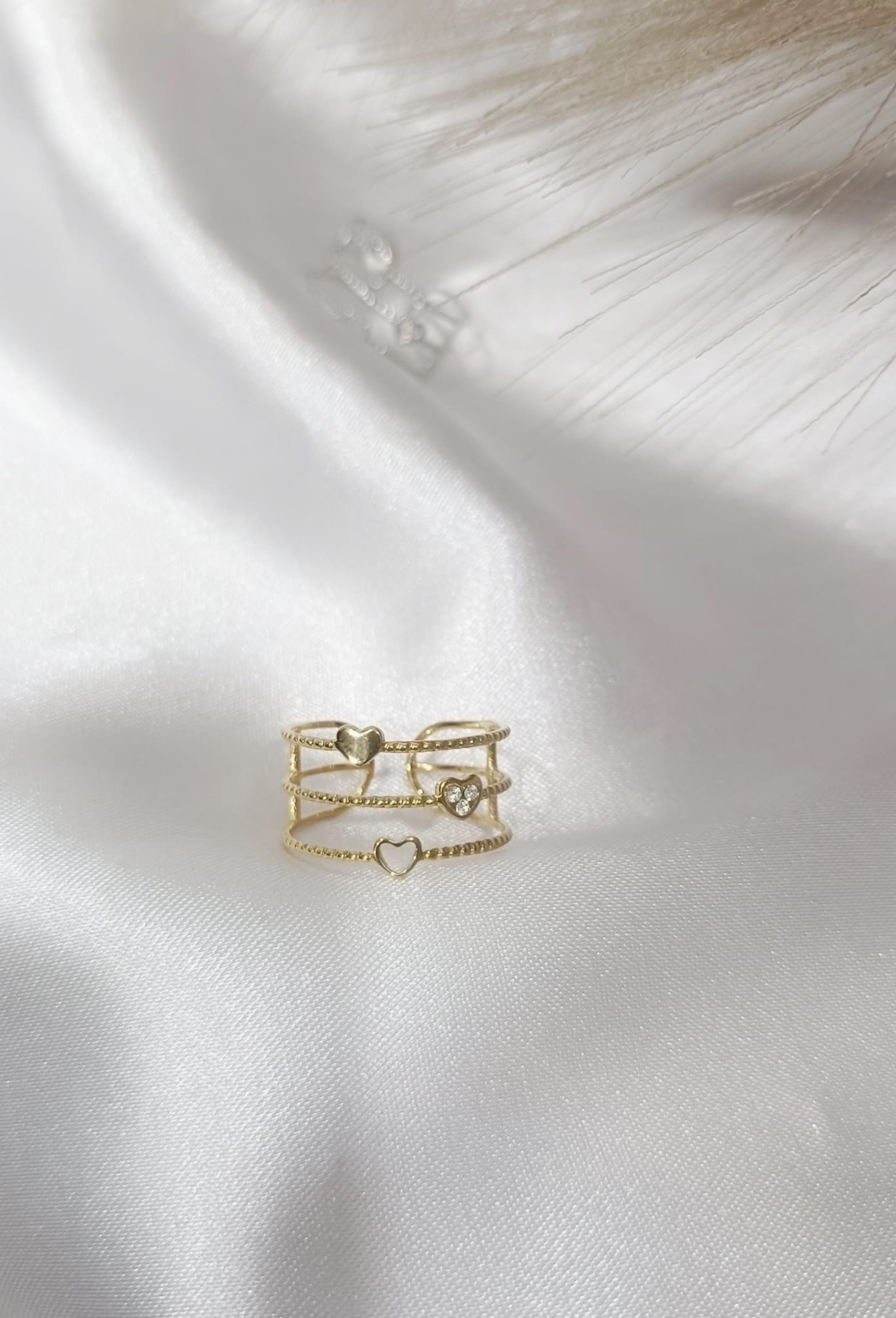 Anel Delicate Ajustável 8,90 € Desconto de %. Partilhar Cor Dourado prateado Comprar Contactar 1 unidades em stock | SKU: Ref: R328 Anel ajustável em aço inoxidável com três corações delicados, um deles com zircónias subtis. Um toque romântico para usar sozinho ou em conjunto. Stainless Steel Hipoalergénico O amor está nos detalhes.